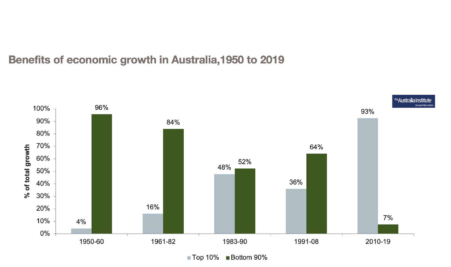 “The top 10% over that period got 93% of the benefit,” leaving a mere 7% of economic growth for the remaining 90% of Australians. This immense disparity, Grudnoff explained, is driven by stagnant wages juxtaposed against surging corporate profits and investment yields.