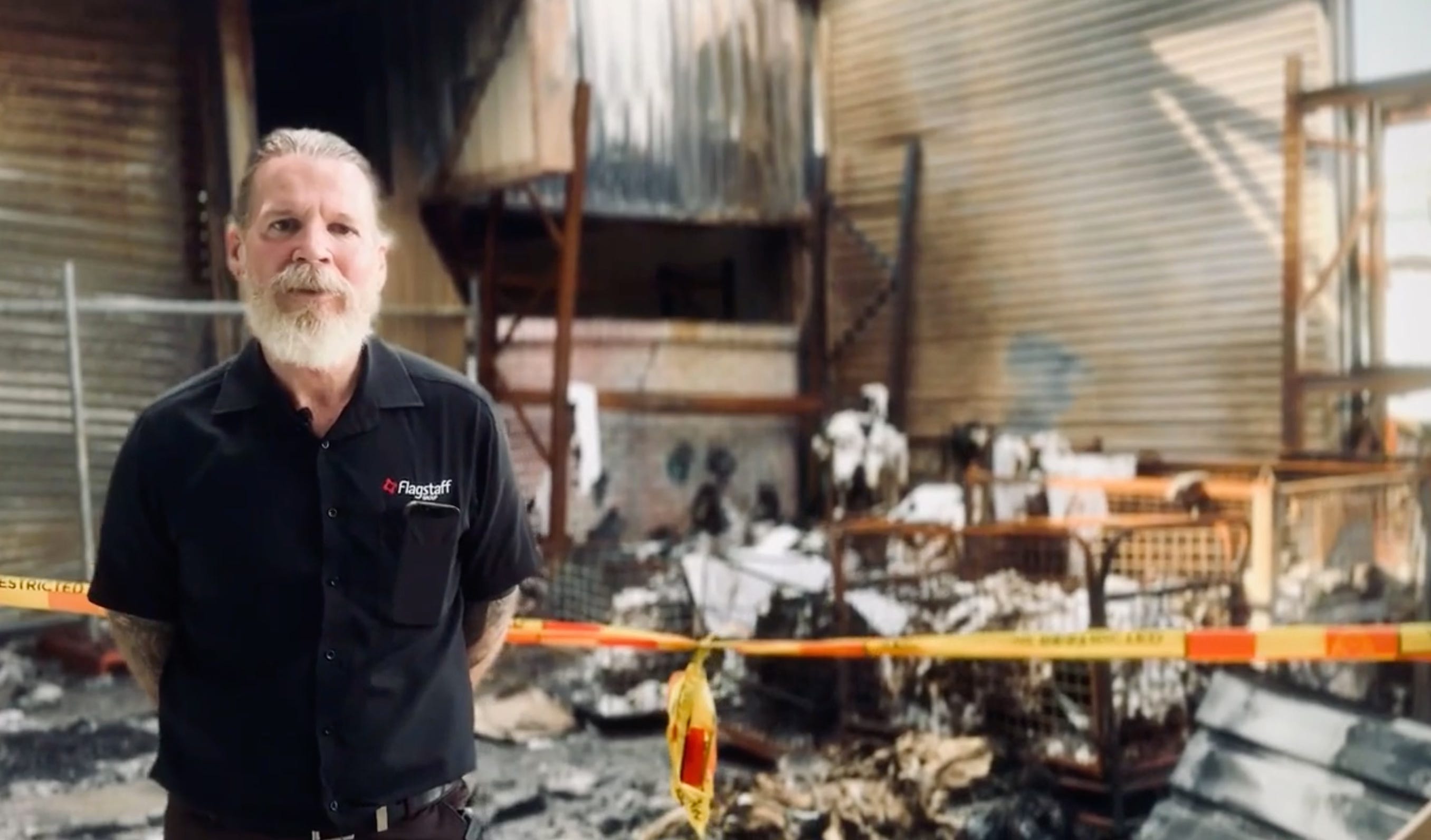 Flagstaff group CEO Rodney Von Clark at the fire-hit Unanderra operation. Picture from Flagstaff video.