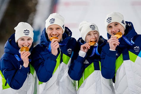 Thanks to our partnership with Associated Press, we can share more glorious images from the Winter Games. These are moments of happiness, human endeavour, facial fun, photographic artistry, and - of course - athletes biting medals (!) What is with that?